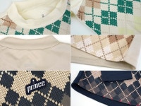 アーガイル柄を前身頃にプリントしたロングスリーブシャツ。